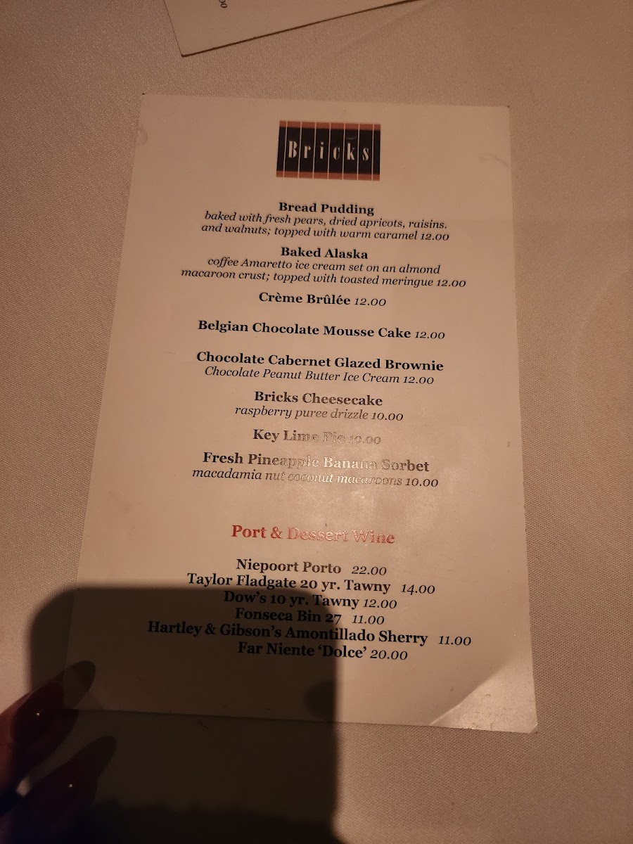 Don’t miss the decadent desserts like Bread Pudding and Creme Brulee, perfect for a sweet finish. With attentive service and a warm atmosphere, Bricks invites you to indulge in a memorable culinary journey.